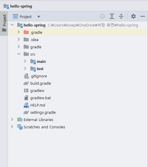 junit이라는 테스트라이브러리가 자동으로 들어가있는 것을 확인할 수 있다.