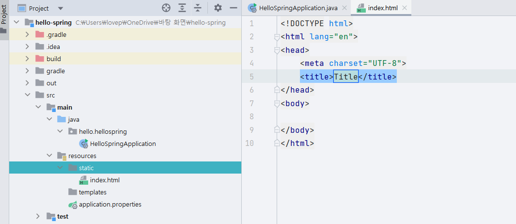 resources/static 폴더 안에 html 파일을 만들어준다.