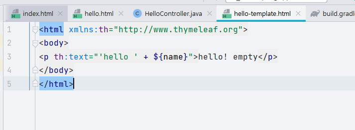 thymeleaf의 장점은 서버를 실행하지 않고 열어봐도 파일의 껍데기를 볼 수 있다.