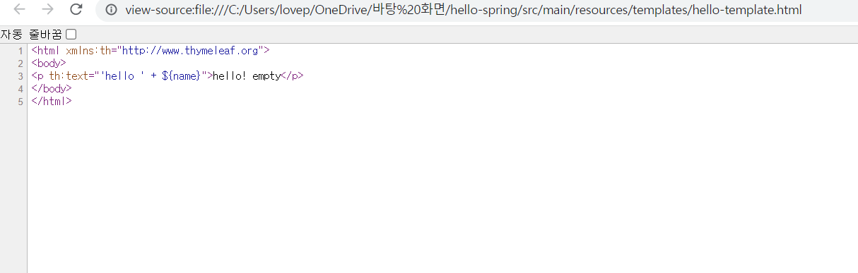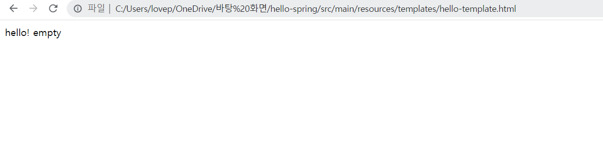 C:\Users\lovep\OneDrive\바탕 화면\hello-spring\src\main\resources\templates\hello-template.html 파일의 경로를 복사해 검색창에 넣어주면 현재 파일을 열어준다.