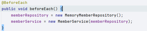 하지만 MemberService밖에 없기 때문에 클리어가 안 되기 때문에 MemoryMemberRepository 객체를